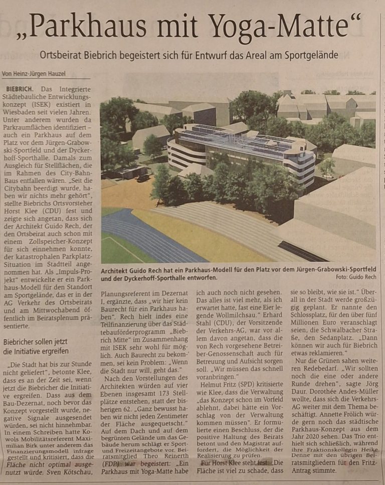 - Die FDP unterstützt jede Parkhaus-Idee, wie die am Jürgen-Grabowski-Sportfeld.